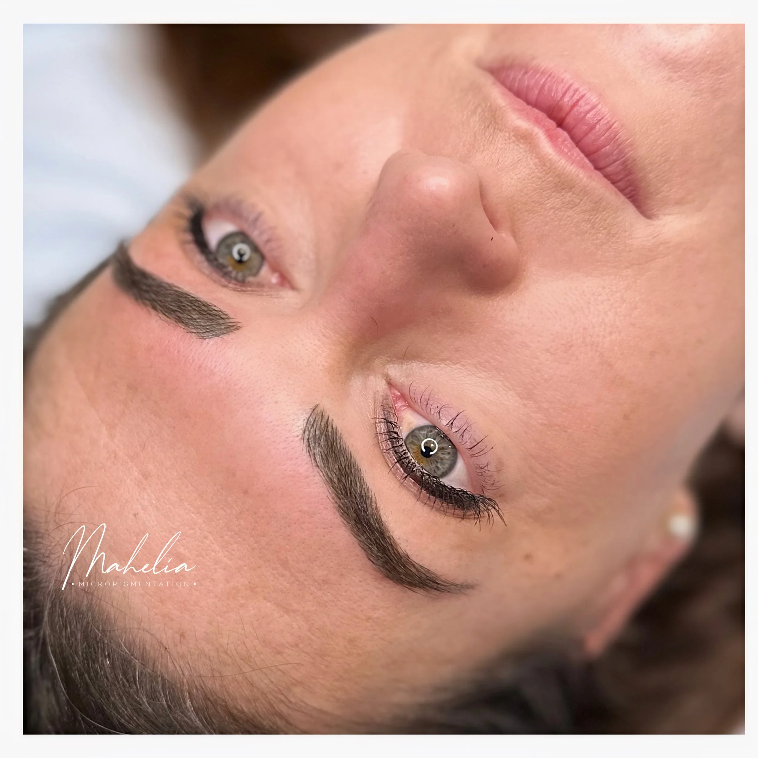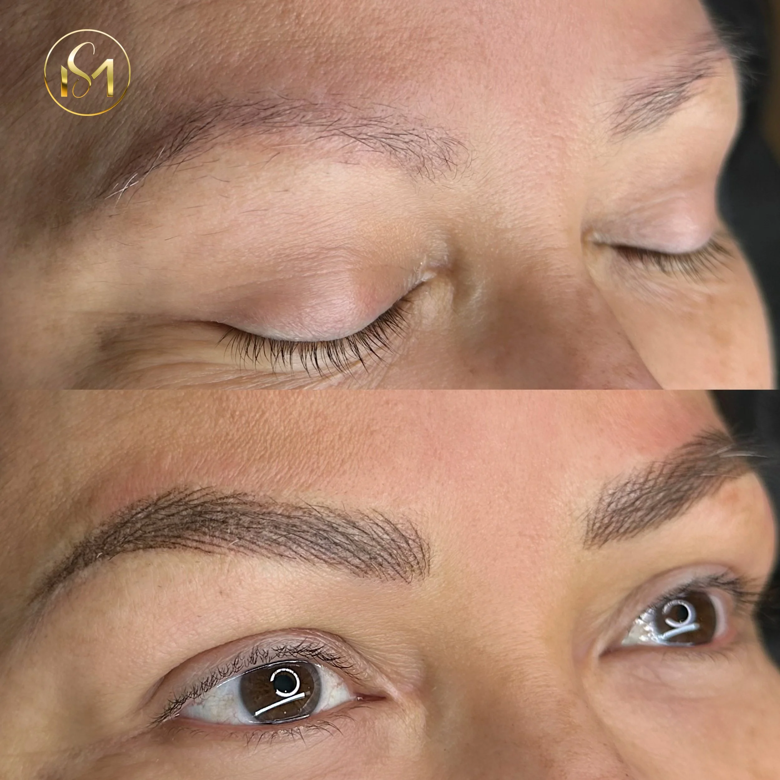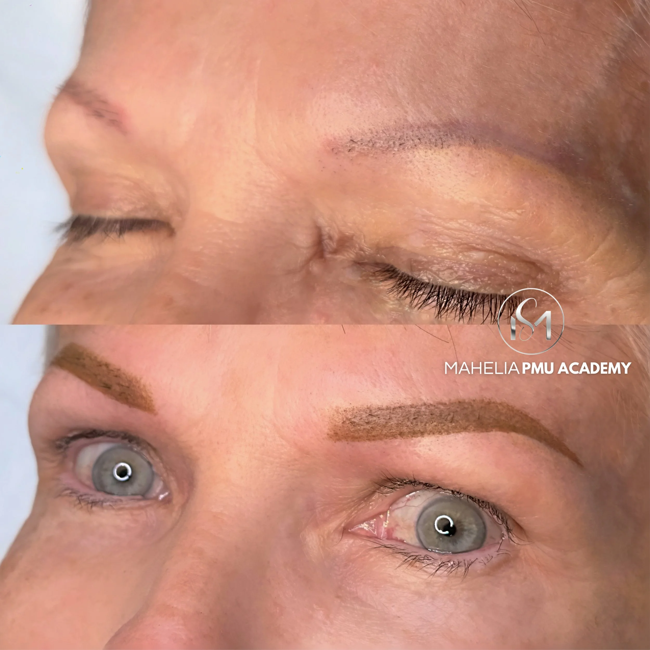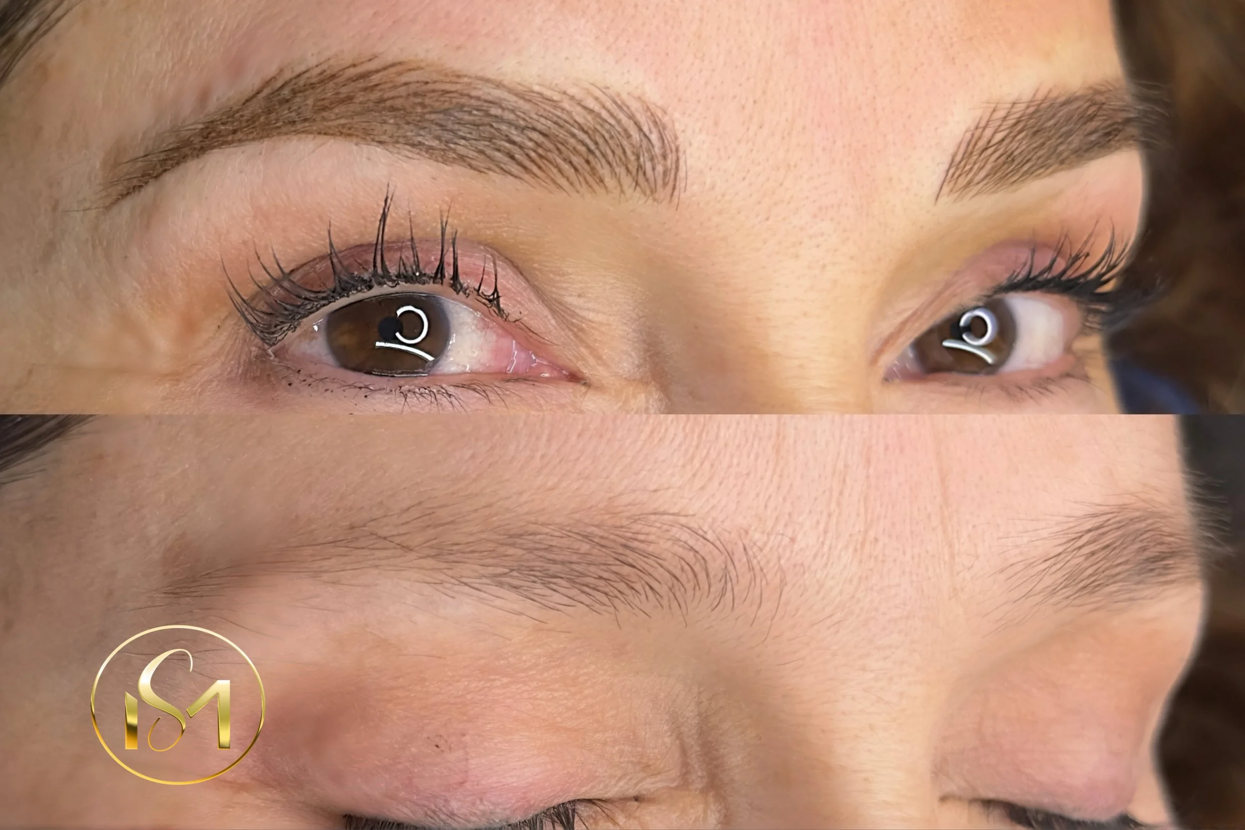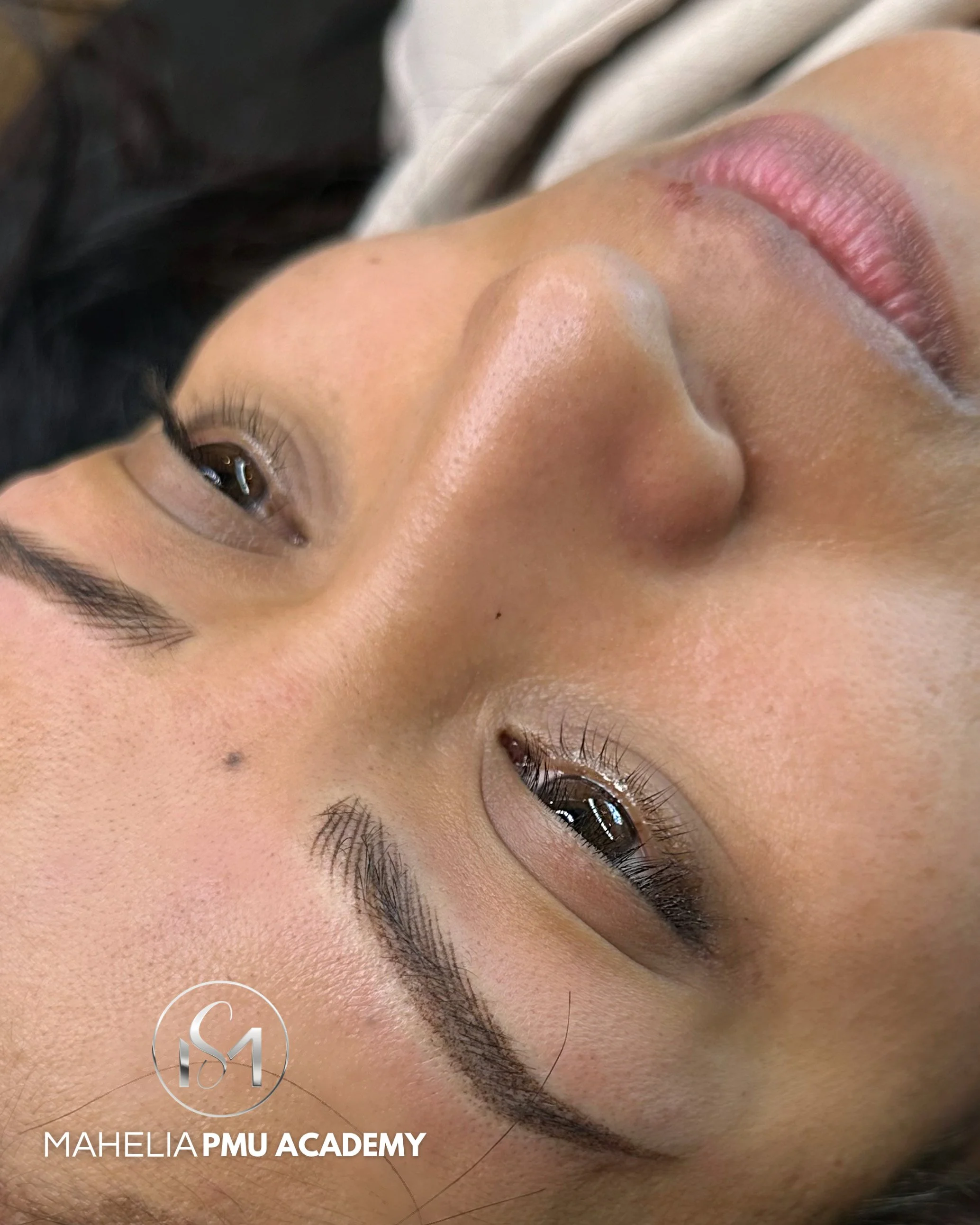 Close-up of lips before and after micropigmentation treatment, showing enhanced color and symmetry.